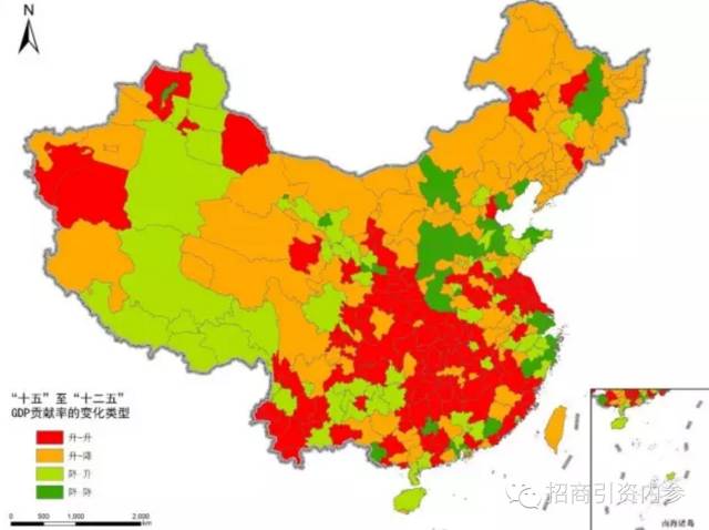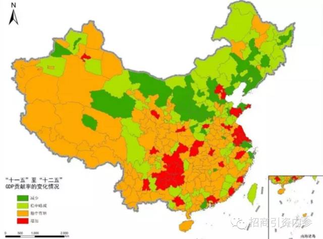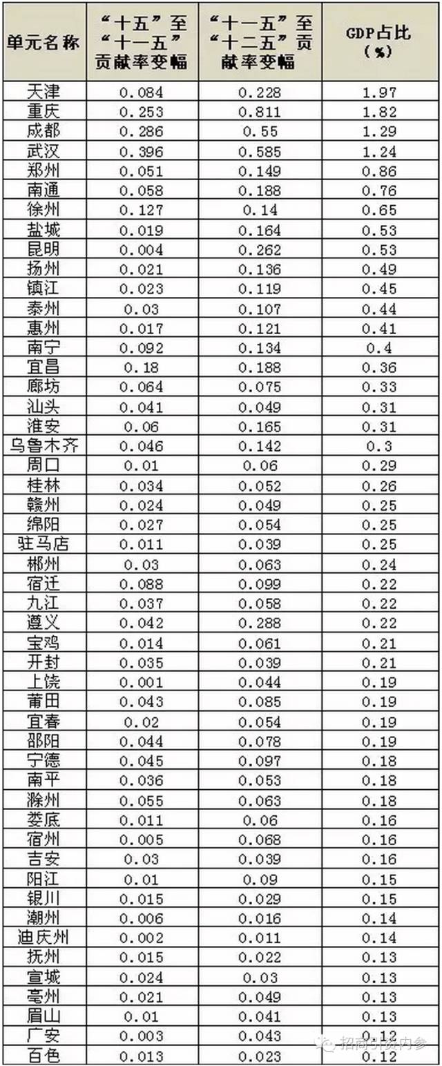 图2:“十一五”到“十二五”期间各单元对全国增长贡献率的变幅