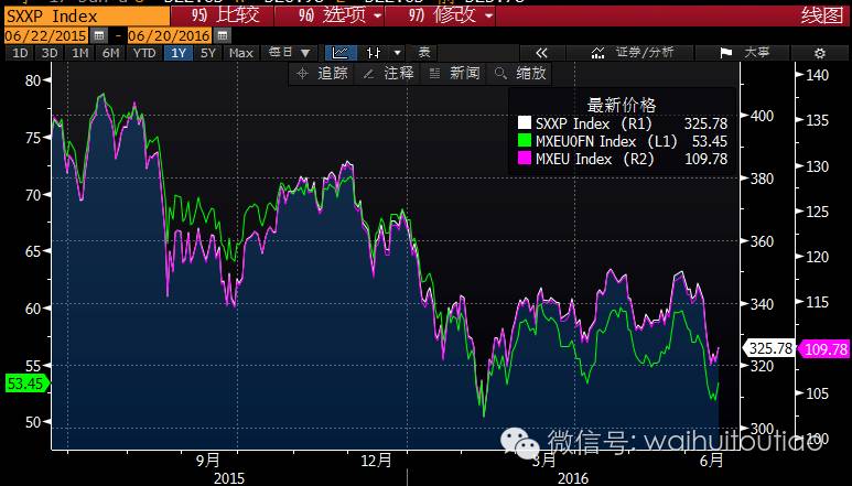 斯托克500:现时水平为2830点。若投票结果为退欧,将跌至2400-2550点;若留欧,则将升至3150-3300点。