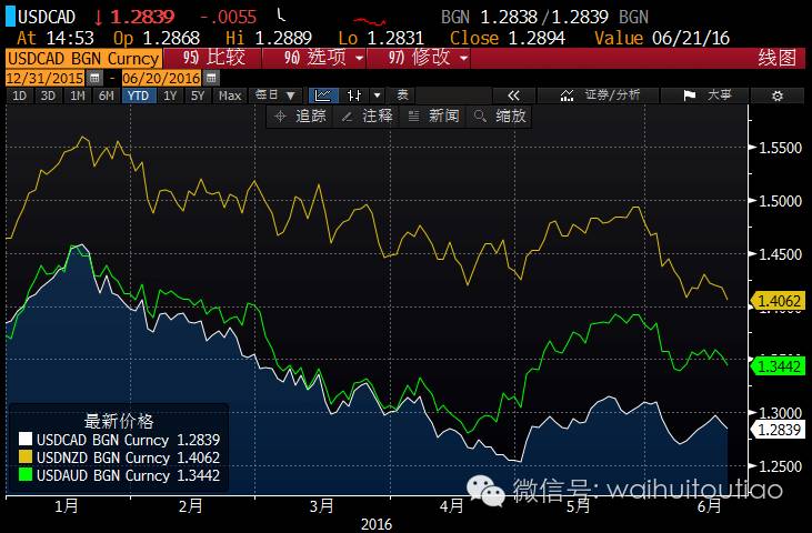 加元、纽元以及澳元:所有的这些货币与英国贸易投资关系相对并不密切,因此预计在第一轮,英国退欧冲击之下,这些货币表现将“相对”稳定,但是,更重要的是全球风险环境以及大宗商品价格波动所造成的影响。由于中国与欧盟的贸易往来较大,因此全球贸易放缓将会率先施压上述三种货币中的澳元。