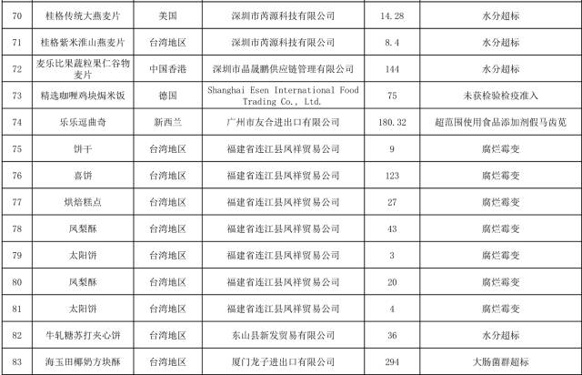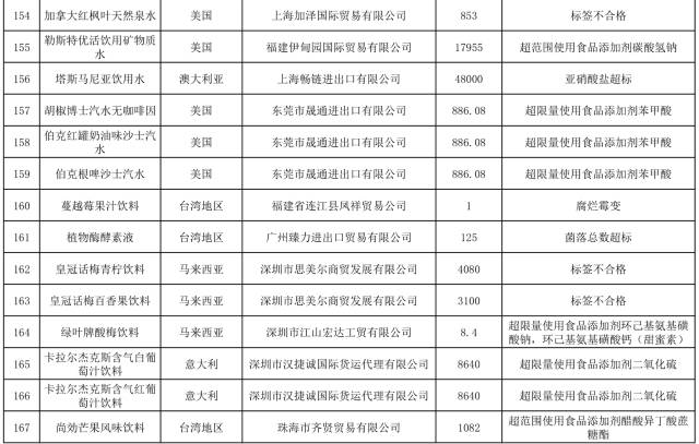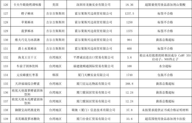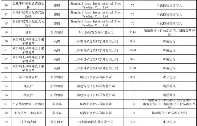 食品添加剂超量或超范围使用、微生物污染、品质不合格等成为进口食品不合格的主要原因。