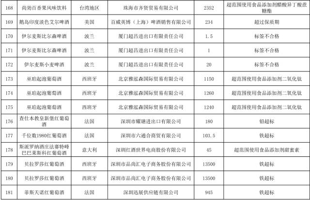 由北京雅泓森国际贸易有限公司进口的3批产地为“西班牙”的巫珀起泡葡萄酒因超范围使用食品添加剂二氧化钛被销毁。