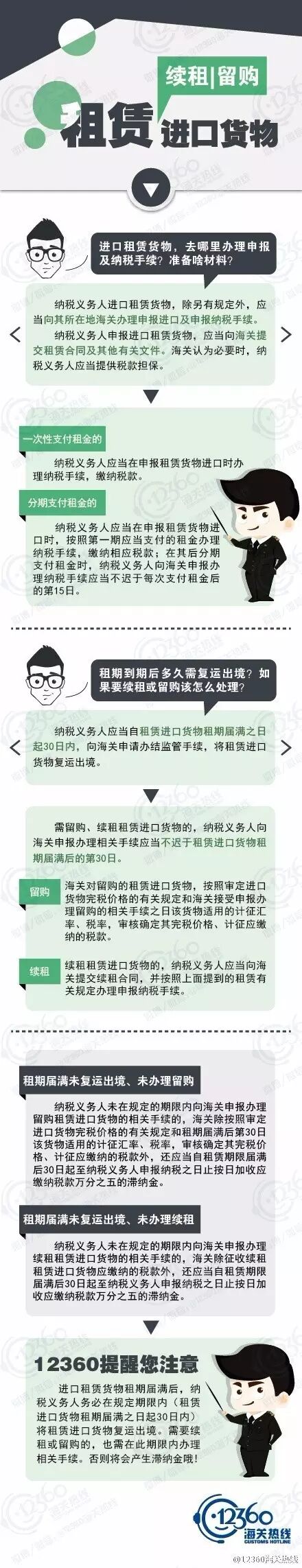 租赁进口货物,应当如何申报纳税?租期届满后,如果需要续租、留购,又该怎么办?一起来了解下:☟☟☟来源:12360海关热线