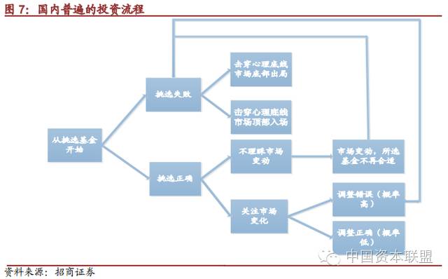 投资流程不合理:典型的 FOF 投资流程包括 4 个阶段:第一,确定合理的 FOF 投资偏好,制定收益目标,完成产品设计;第二,根据制定的产品配置特性,设置合理的投资策略;第三,对于不同的投资标的筛选合适的基金产品;最后,进行事后风险控制与绩效评估。然而,国内 FOF 基金普遍忽视了前两个阶段,直接从第三阶段基金筛选入手,失去了 FOF 基金在设立时的最初目的。同时,从基金筛选开始的投资流程还可能会放大整体风险,选出不合适的基金标的的概率很高,这也是造成国内 FOF 净值表现普遍不佳的重要原因。