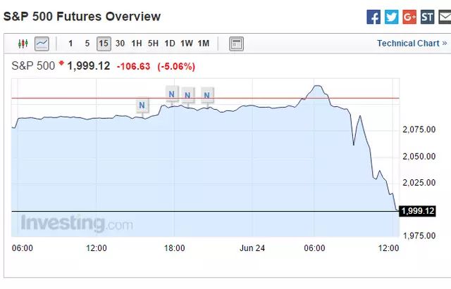 标普500指数期货跌幅扩大至5.1%,触发熔断。