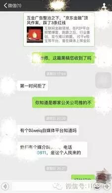 6月22日,京东金融官方向中国电子商务研究中心(100EC.CN)发来声明《告“黑公关”及“幕后黑手”书》,其中表示,近日京东金融不断接到用户举报,有“黑公关”冒充京东金融员工、正规公关公司及友商,请求部分媒体和自媒体有偿转发京东金融负面稿件,对公司商业信誉构成了严重损害。