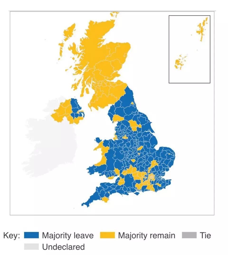 △英国各地区投票结果(来自BBC)
