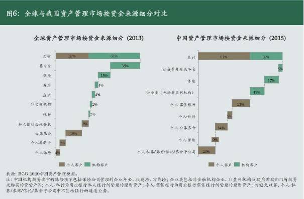 除养老金外,险资及企业未来也仍是重要的机构投资者,银行委外投资的重要性也将上升。个人投资者中,一方面高净值客户仍是中坚力量,其投资行为的成熟和需求的复杂化对资管机构提出了新的要求;另一方面,中产、数字大众等客群兴起,资管机构可以凭借互联网金融以较低的成本服务此类客户。(关于不同资金来源的详细分析请参见完整版报告)