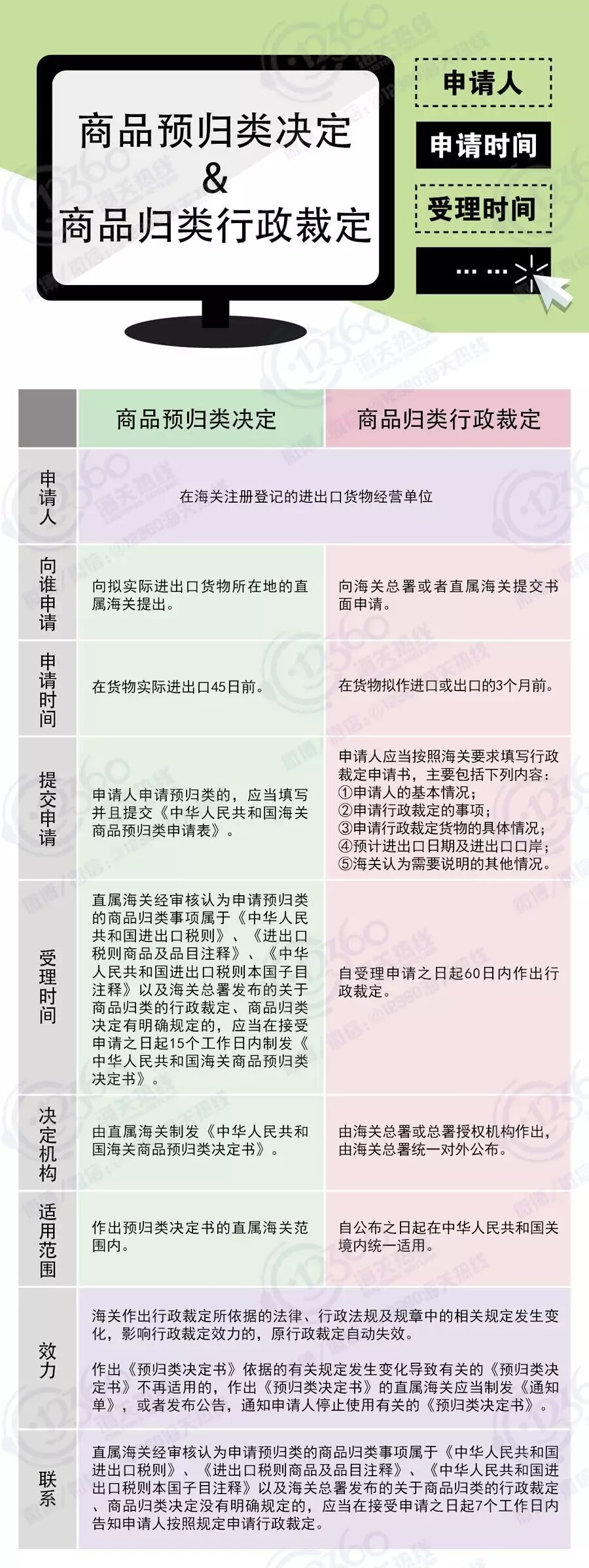 来源:12360海关热线(ID:RX12360)这两份同样是关于商品归类的海关文件有哪些不同?小编总结了二者在申请时间、受理机构、适用范围等方面的不同之