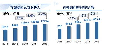 首先,2015年百强企业营业收入12,714亿元,同比增长3.2%,整体增速有所放缓。销量上,2015 年百强企业整车销售653.4万台,同比增长5%,增速亦有所放缓。2015年百强经销商销售数量占市场总销量的比重保持在25%。