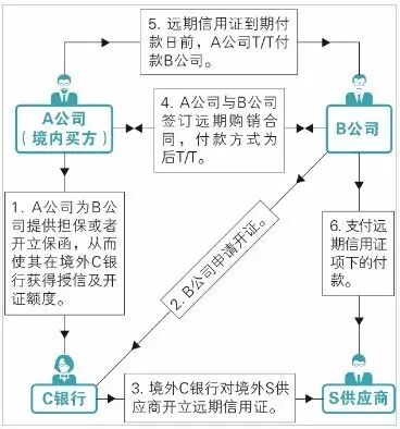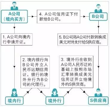 效果:该方案同样可以解决B公司境外无授信、无融资能力的问题,并使A公司获得境外融资,延期付款。