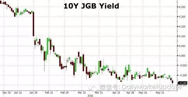 下图是日本10年国债收益率从2015年年底至今下降的情况。目前是负的0.15%
