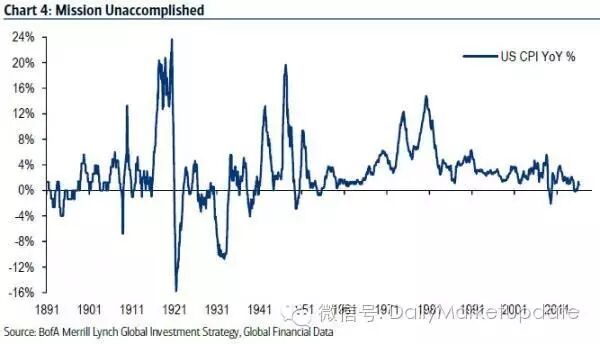 下图是1891年至今美国CPI增长率变化情况: