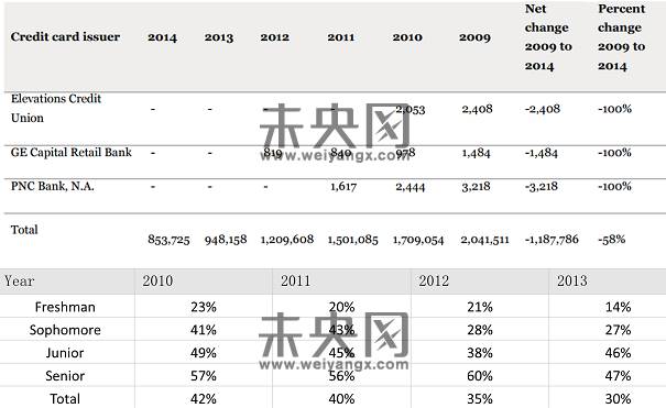 这是我在相关报告里查到的一些数据,可见受09年颁布的Credit Act影响,大学生持有信用卡率是逐步下降的。