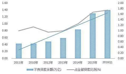 伴随着银行盈利能力下降的,是不良贷款的上升。截至 2016 年一季度末,我国银行业不良贷款余额达到 2.1 万亿,不良贷款率达到 2.04%,突破 2% 生死线。