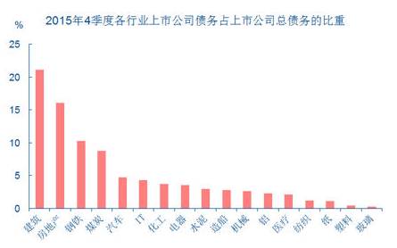 在图3中,我们估算了各行业上市公司债务占整体上市公司债务的比重,显示的是各行业对信贷资源的占用。从图中可以看到,建筑行业、房地产、钢铁、煤炭等和房地产、重工业联系紧密的行业中,债务占比明显超过其他行业。我们估算的政府的隐性担保也是以地产、钢铁、建筑最受益。反而是更依赖外部融资的新兴行业,因为缺少抵押品,难以获得银行贷款。