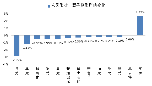 周内人民币仅对英镑升值,对马来西亚林吉特持平,而对其他一篮子货币呈贬值趋势(图四)。