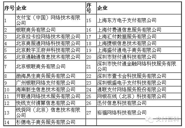 下面是首批27家企业名单,不知道哪一家会痛失支付牌照,我们不妨拭目以待。