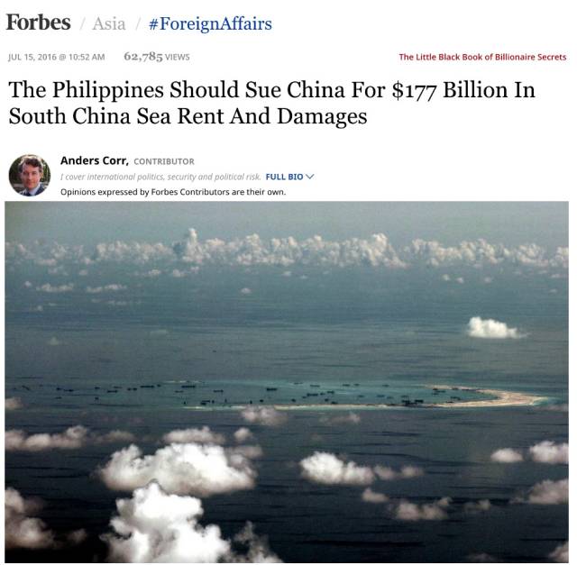 但今天之所以跟大家介绍这个人,是因为近日他居然在美国的福布斯杂志上撰文,抛出了一个太过疯狂的观点——要让菲律宾和其他与中国在南海较劲的国家,向中国讨要“占用”南海的赔偿款,而数额更是能把你惊呆!