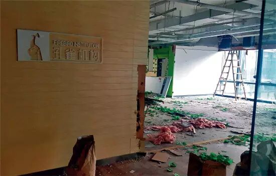 此时孔雀机构的资金链已经断裂,开始拖欠房租。于是4月21日被物业公司拆除。