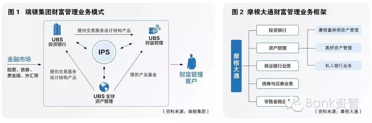 随着社会财富的快速增长,居民对金融服务的需求日益向多元化发展,国内外银行纷纷通过各种形式发展财富管理业务,一些国际先进银行的管理资产规模(Asset Under Management,AUM)已超过其总资产规模。在此背景下,探索和尝试以AUM为基础的管理体系建设,并逐步替代以存贷款为基础的传统管理和考核模式,显得越来越重要。财富和资产管理已经成为商业银行转型发展的重要业务领域之一,AUM指标体系作为资产管理的重要考核指标,是最能够体现银行“资产配置方案”价值的考核指标,在西方商业银行中得到了广泛的应用。西方金融机构一般用AUM规模来衡量资产管理公司的市场影响力,AUM越大说明该机构在资产管理界的地位越强。同时,很多机构按照AUM的一定比例收取资产管理费用,因此AUM也是衡量其投资业绩、获取收益的基础。由于高度重视AUM资产管理规模,通过适时调整自身资产结构、及时置换资本消耗高的资产、推动向轻资本的资产管理业务转型,20世纪80年代以来国际大型银行机构的资产管理规模普遍开始大幅增长,AUM往往超过其总资产的规模,AUM增速也快于其资产增速。2014年,全球资产管理规模排名前20名的资产管理机构中,按母公司主业归类,商业银行系达到了10家,银行集团的管理资产规模也占到了前20大资产管理机构的53%。多数的国际性大银行,例如瑞银、巴克莱、花旗、摩根大通、德意志、汇丰等,都设有独立的业务部门和专门的团队为高净值人士以及机构和公司客户提供量身订制的财富管理服务。笔者选取摩根大通银行、德意志银行、瑞银集团以及澳联邦银行这四家银行进行样本观察。瑞银集团:“共享式”管理架构。瑞银集团是全球第一大银行类资产管理公司。其财富管理板块采用了“共享式”的管理架构,设立了专业进行产品开发和管理的产品管理部(IPS),为所有财富管理客户提供服务。财富管理板块内设法律合规部、业务管理部、人力资源部以及首席风险官,根据客户类别将业务分为零售业务、机构业务、离岸业务和在岸业务。产品管理部直接连通各大业务板块,聚合投资银行板块、全球资产管理板块以及财富管理板块的专家,通过客户共享、产品交换和业务间的配送服务,为财富管理客户提供完整的投资方案、产品和综合性的金融服务。