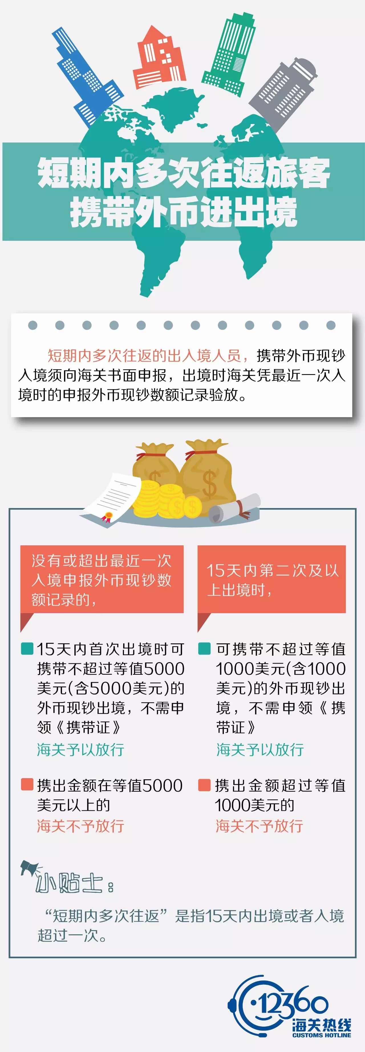 来源:12360海关热线海关对短期内多次往返旅客携带外币现钞进出境是怎样规定的?如何定义“短期内多次往返”?详见下图编辑:12360海关热线制图:1