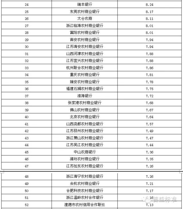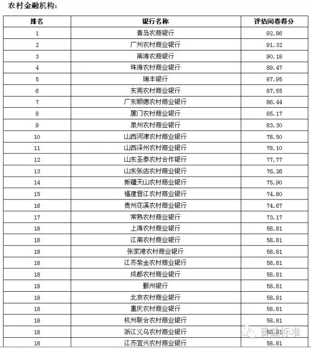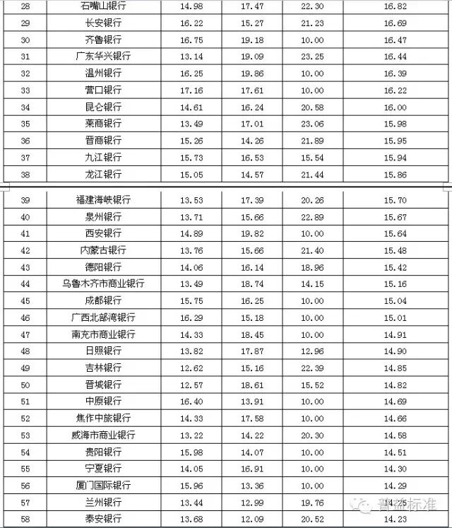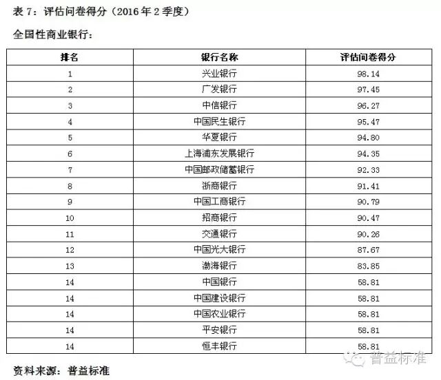 2016年2季度银行理财能力排名的评估问卷分数,得分如下: