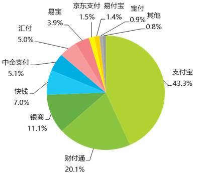 鉴于支付业务的基础性和重要性,不难发现,设立或收购一家第三方支付牌照公司已经成为大型企业布局互联网金融业务的必做之事。以艾瑞咨询发布的2016年第一季度中国第三方PC支付交易规模的市场份额来看(参见下图),第三方支付行业的市场格局初定。在前十大企业中,中金支付、汇付天下、易宝和宝付更侧重2B端支付业务,银联商务专注于支付业务,支付宝(蚂蚁金服)、财付通(腾讯金融)、快钱(万达金融)、京东支付(京东金融)、易付宝(苏宁金服)等五家支付企业背后均有一家互联网金融集团。