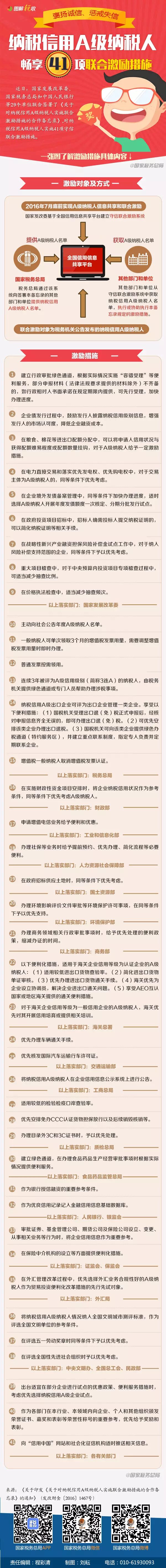 给A级纳税人的41项守信联合激励措施 ,一图了解