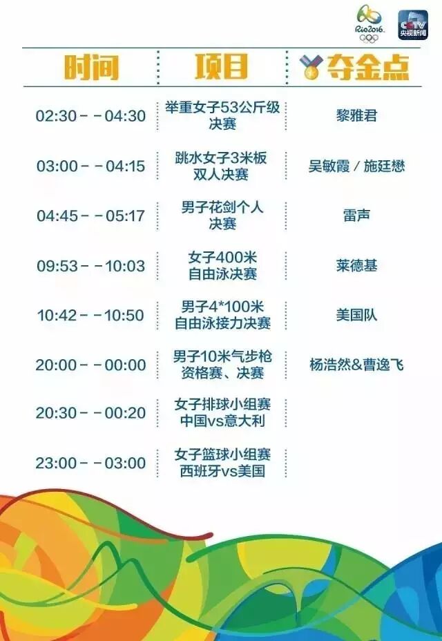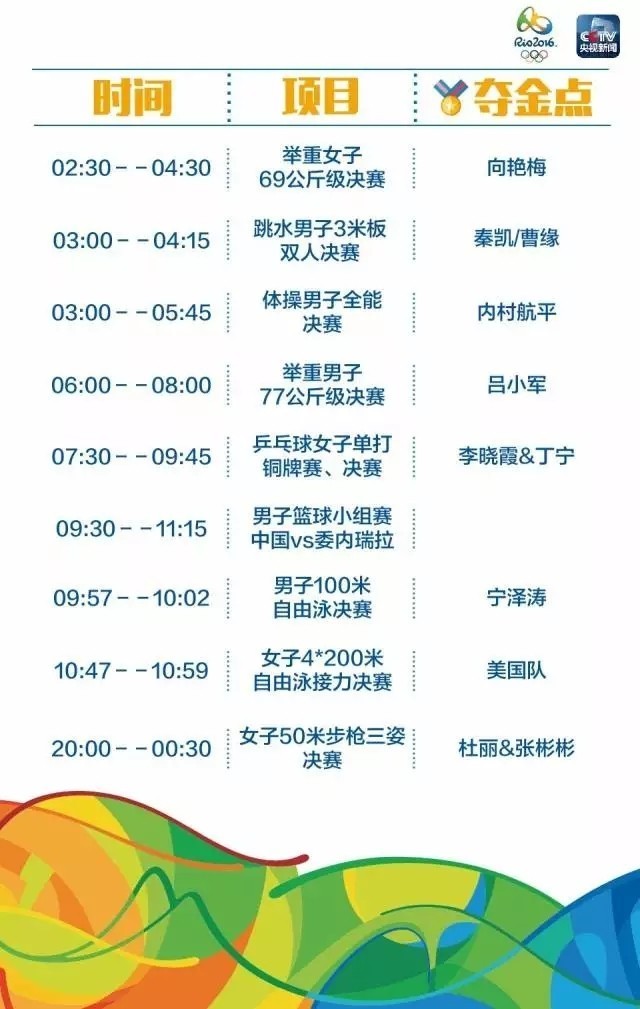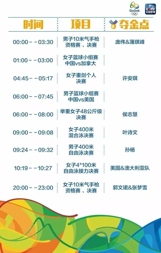 8月6日奥运开幕!中国军团夺金时刻表,快收藏!