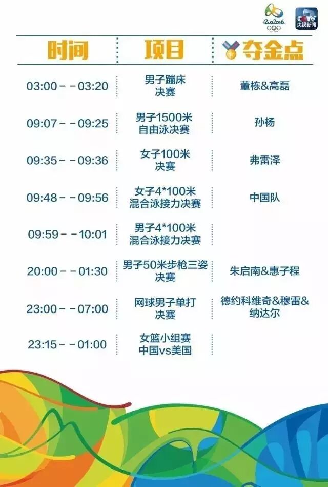 来,收下这份中国版里约奥运观赛指南,夺金时刻全知晓。这个夏天,一起看奥运,为中国队加油!