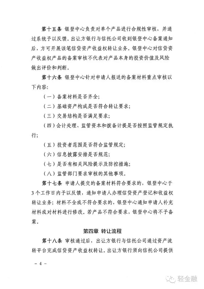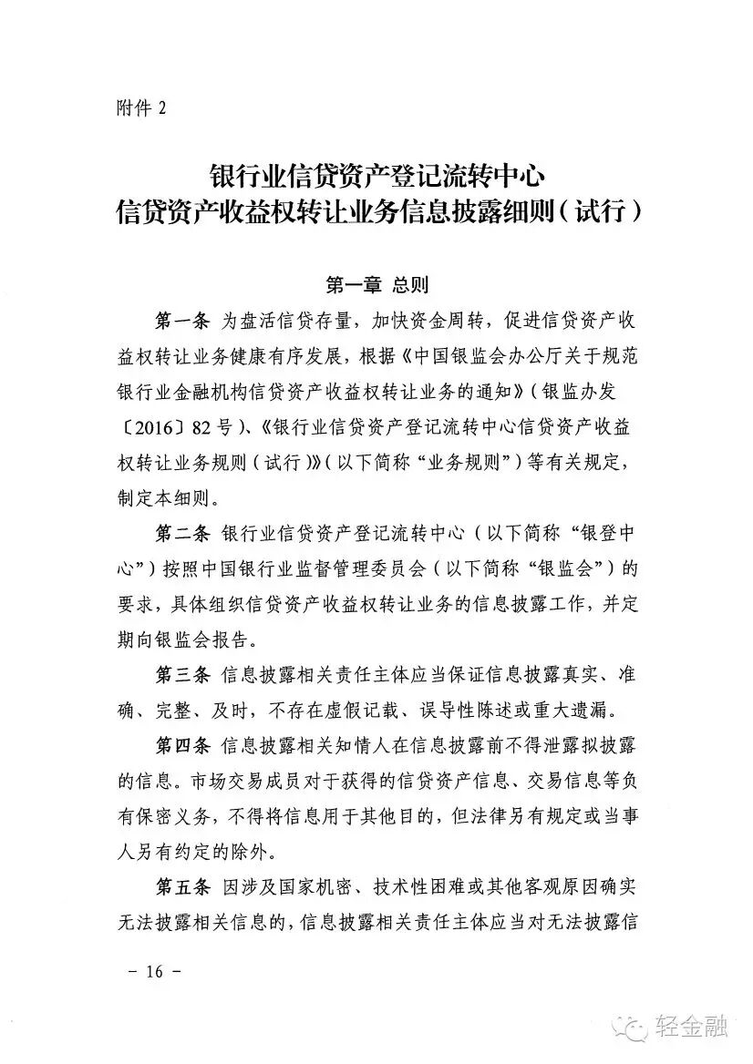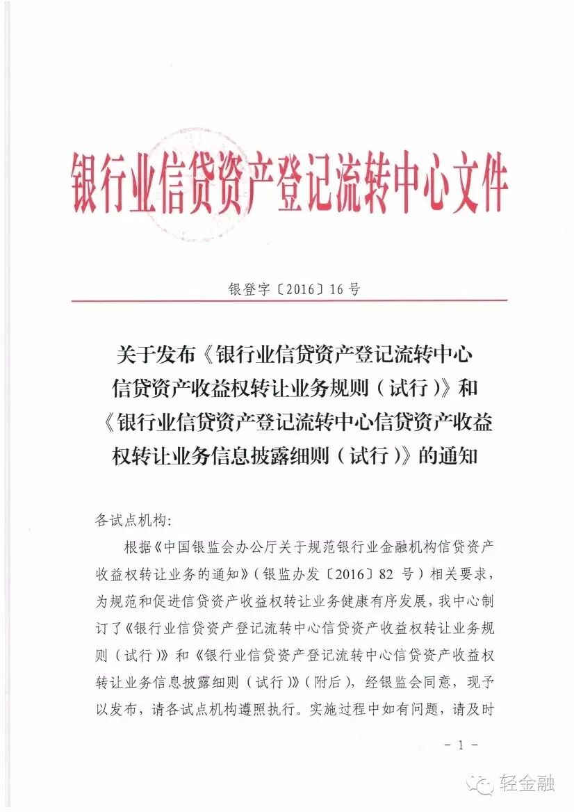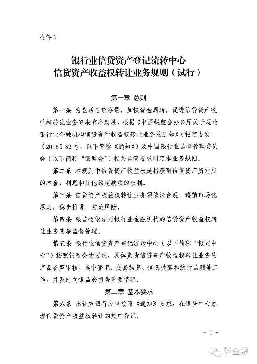 轻金融导读 8月1日,银登中心公布了82号文信贷资产收益权转让业务规则和信息披露规则,包括基本要求、备案登记、转让流程、信息披露、风险管理