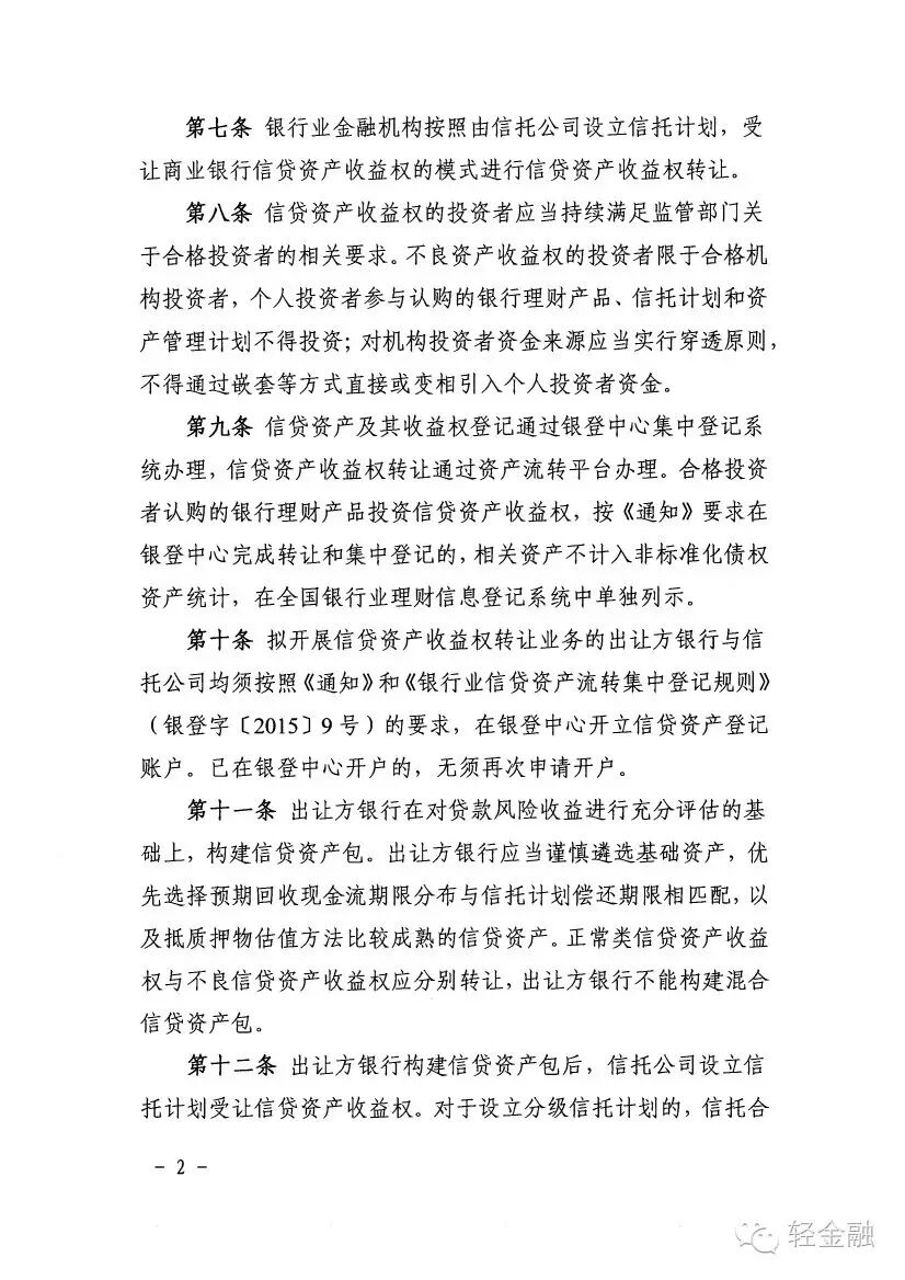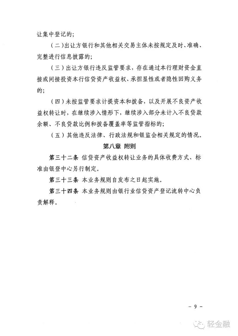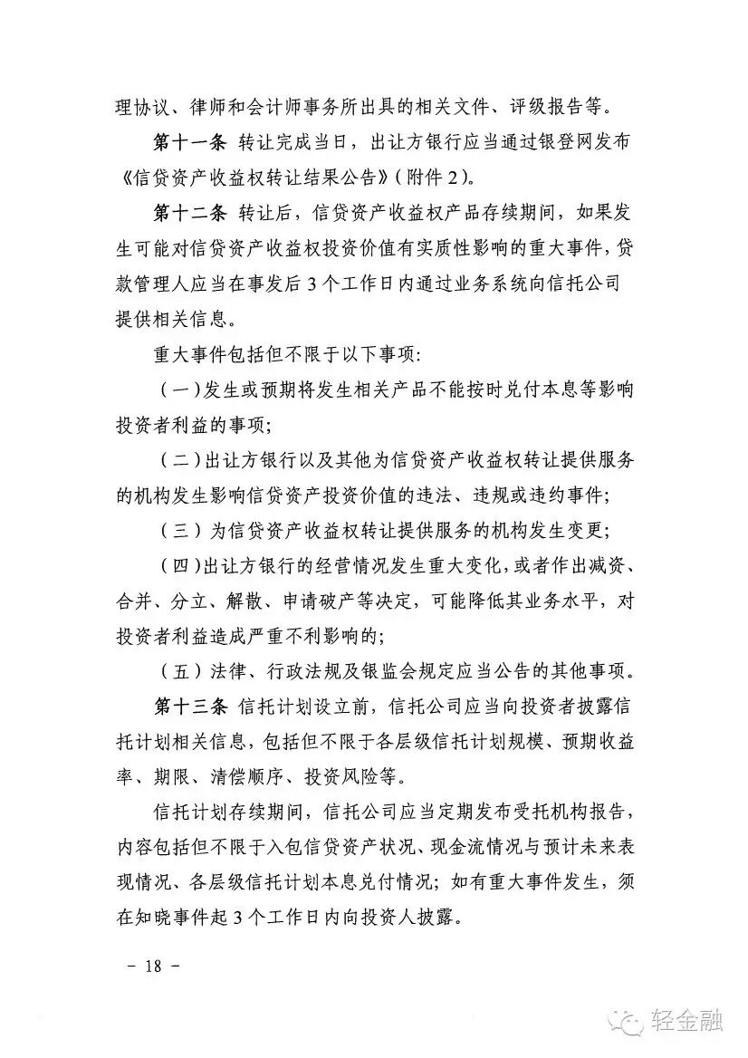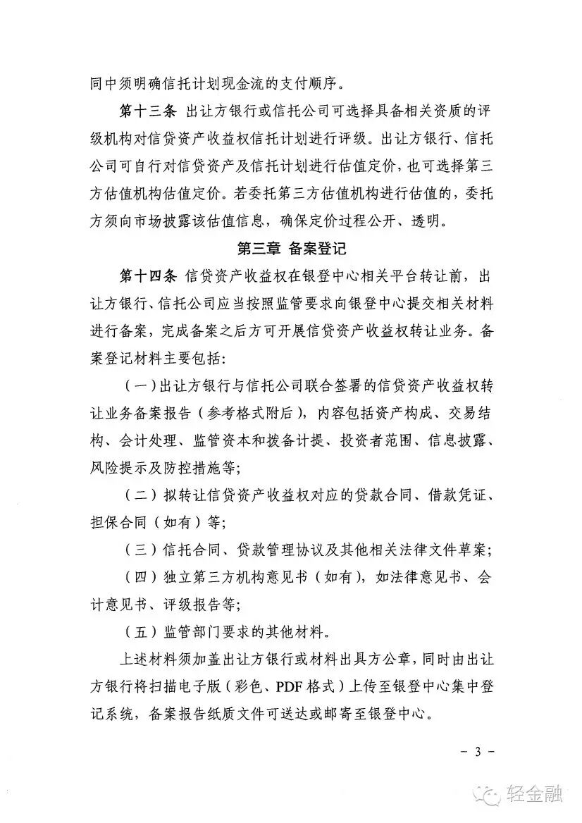 轻金融导读 8月1日,银登中心公布了82号文信贷资产收益权转让业务规则和信息披露规则,包括基本要求、备案登记、转让流程、信息披露、风险管理