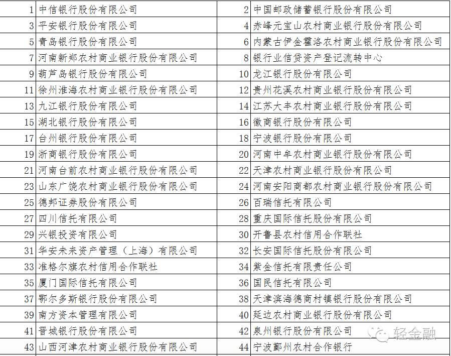 8月1日,银登中心公布了82号文信贷资产收益权转让业务规则和信息披露规则,包括基本要求、备案登记、转让流程、信息披露、风险管理、业务监测和备案等详细内容。同时,还公布了127家已签署《信贷资产登记流转业务主协议》(2016年修订版)等金融机构名单。轻金融将文件内容整理成了图片版如下,供收藏阅读。