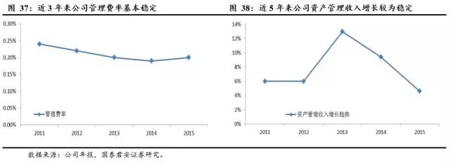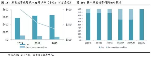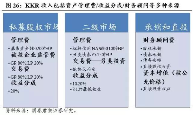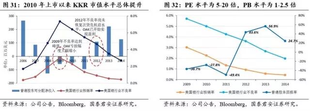 美国沃克尔法案实施后,投资银行因衍生品业务风险敞口高,发展自营业务受限,估值中枢下滑。而一方面,资产管理机构业务模式主要依托管理费收入,投资收益收入占比低,周期属性弱于证券公司,同时资产管理机构业务扩张不依赖大量占用资本,故估值中枢高于证券公司。相对于投行,资产管理机构更是一门好生意。