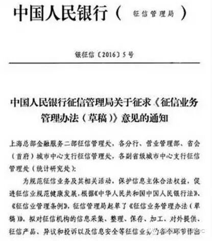 事件七:央行征信管理局下发《征信业务管理办法(草稿)》