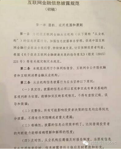 事件一:《互联网金融信息披露规范(初稿)》出炉