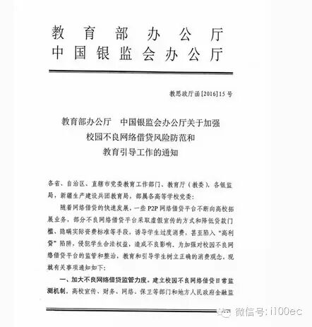 教育部办公厅和中国银监会办公厅联手发布《关于加强校园不良网络借贷风险防范和教育引导工作的通知》,该通知要求加强校园不良网络借贷平台的监管和整治,防止学生陷入校园贷款陷阱,教育学生要梳理正确的消费观念,教育和引导学生树立正确的消费观念。