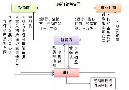 双重担保原则:第一,销售商向银行缴存承兑金额的50%保证金,另以供应商给销售商的100%商品实物作为质押物作50%的授信,当商品库存低于50%数量时,销售商应联系供应商,供应商应及时补货,确保实物商品存量在50%以上。第二,供应商除了向销售商供货外,当销售商无力偿付承兑款项时,供应商在收到银行通知时,负责回购已发的商品并支付余款。