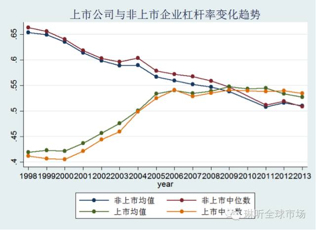 与前一部分的图表合在一起,这些图表和研究结论说明,我国企业负债率的上升主要集中在大型、国有、上市的公司上。而大量中小、民营、非上市企业的负债率却持续下降。
