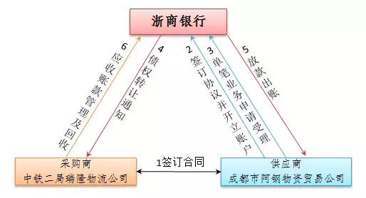 供应商成都市阿钢物资贸易有限公司与浙商银行签订《有追索权国内保理业务协议》,协议签订后,以浙商银行的名义开立保理业务回款专户,并绑定成都市阿钢物资贸易有限公司的单位结算账户,该保理专户是中铁二局瑞隆物流有限公司向成都市阿钢物资贸易有限公司付款的唯一指定账户。