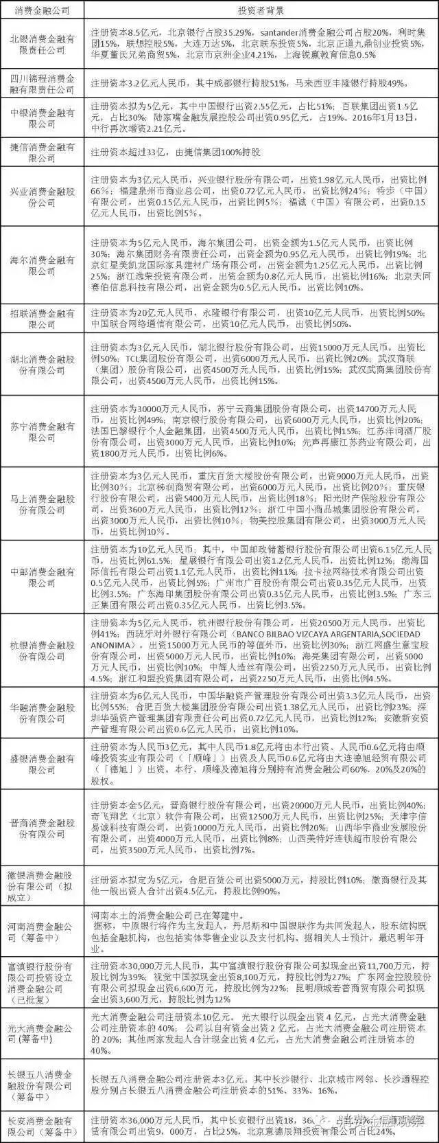 以下是目前已开业、已批筹或者正在申请阶段的消费金融公司情况: