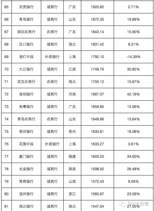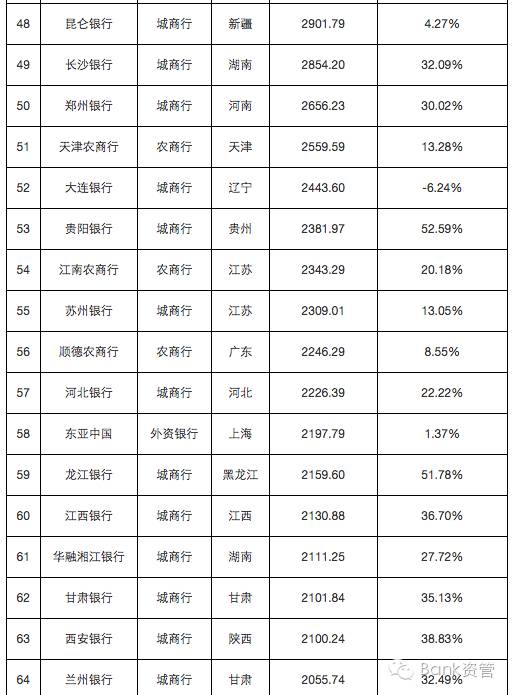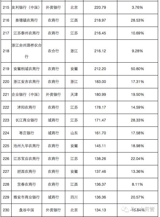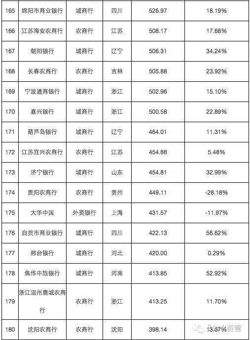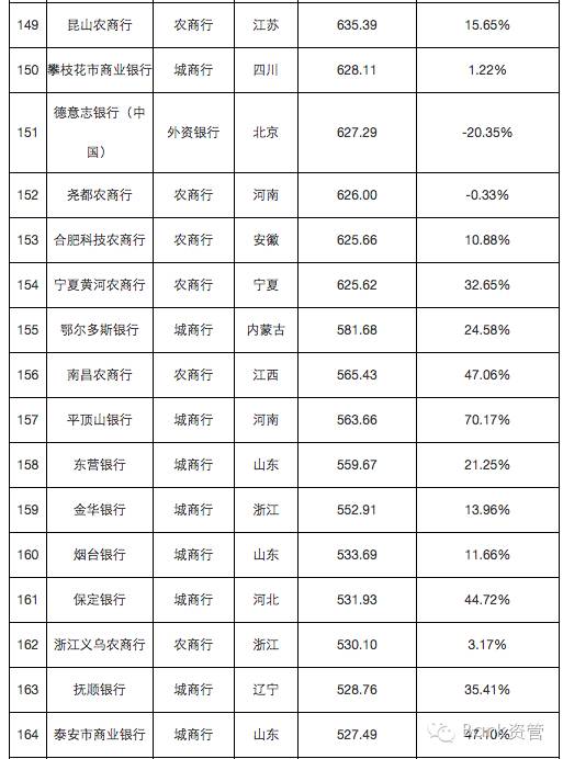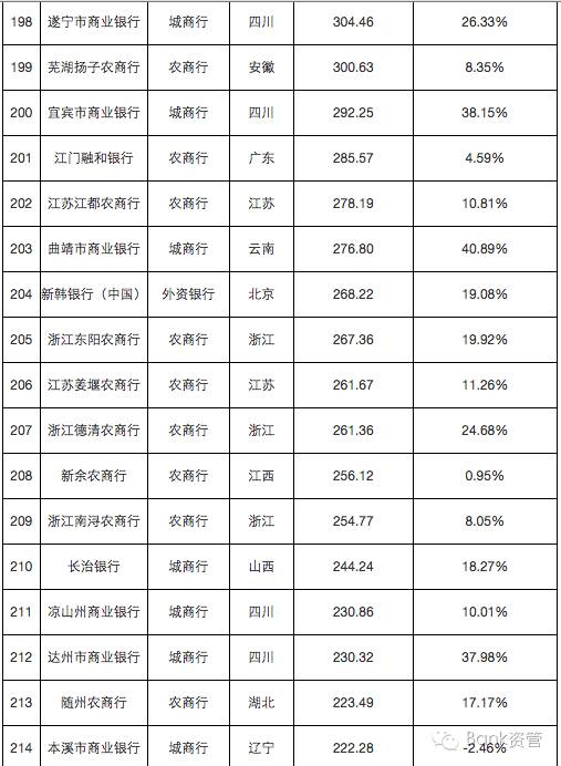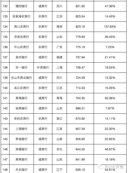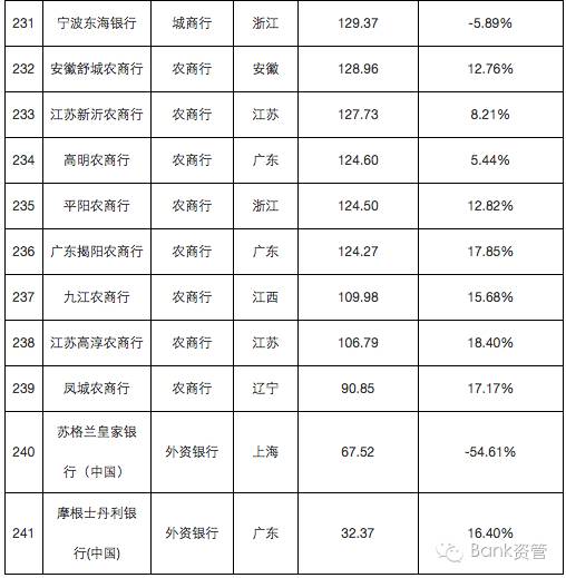 241家银行总资产及增速排行榜