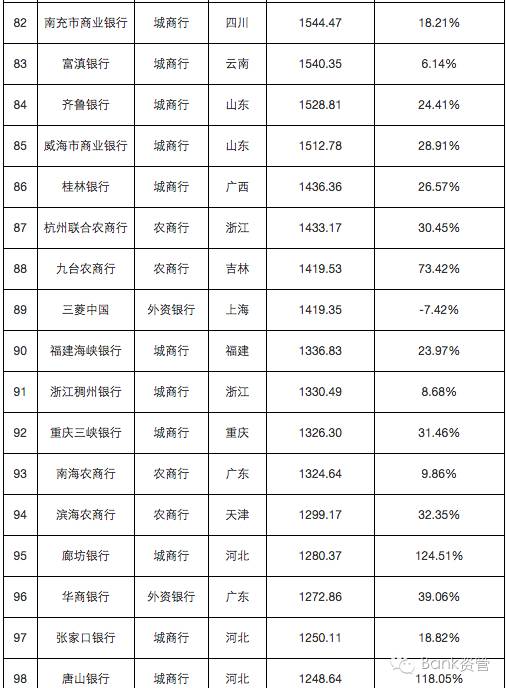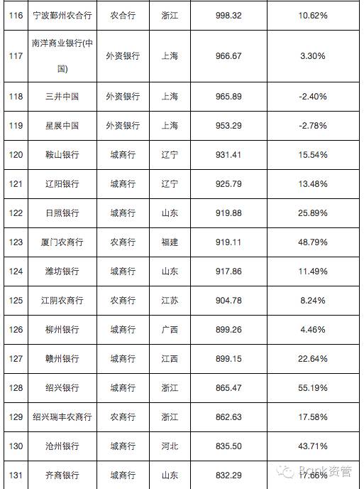 本文后附241家银行详细榜单。