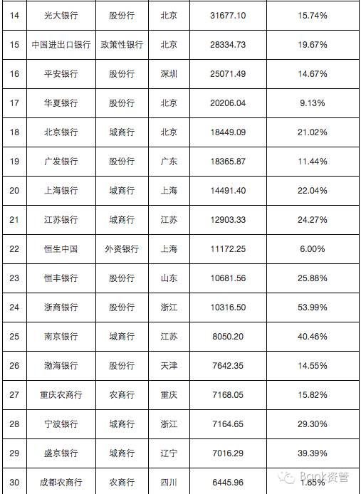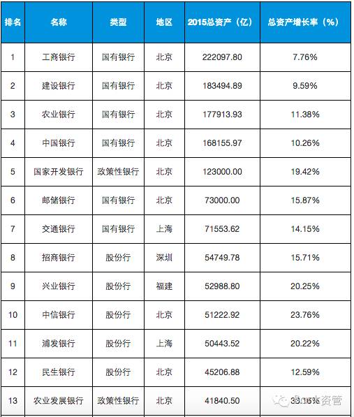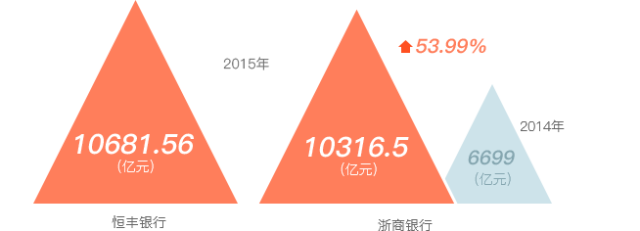 今年新增了2家总资产过万亿的银行,分别是恒丰银行(10681.56亿)和浙商银行(10316.5亿),浙商银行资产总额从14年的6699亿,一举飞奔过万亿,资产增幅达53.99%。