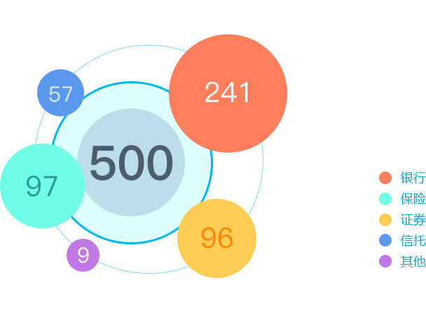 2015中国金融500强由241家银行、97家保险公司、96家证券公司、57家信托公司、以及9家其他公司构成。
