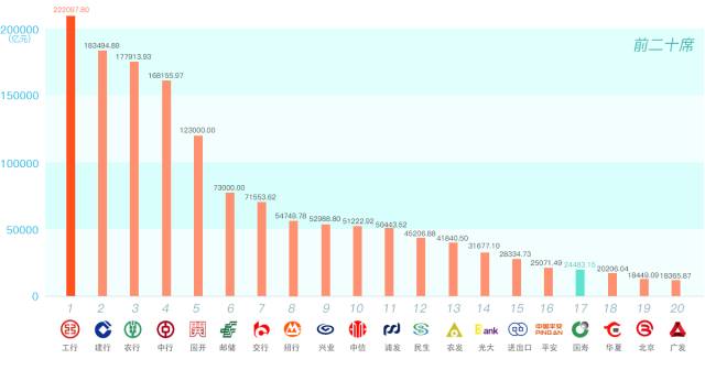 总资产在32亿以上的金融机构可荣登500强榜单,工行以22.21万亿的总资产稳居榜首。