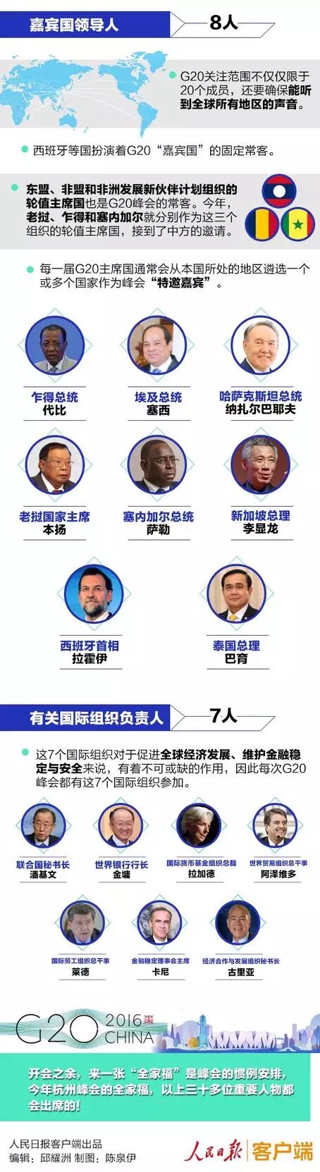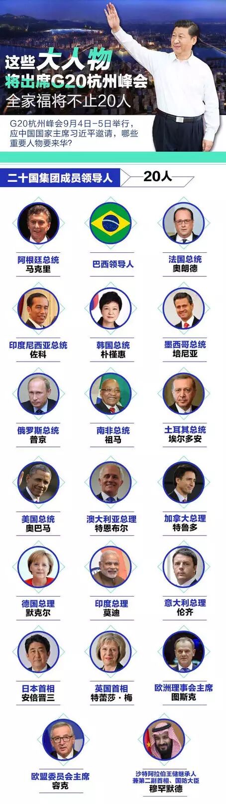 来源:人民日报客户端整理:王坎 制图:刘珂君再过9天,G20杭州峰会大幕将启(会期:9月4日-5日)。届时,习近平主席将与G20成员、嘉宾国领导人及