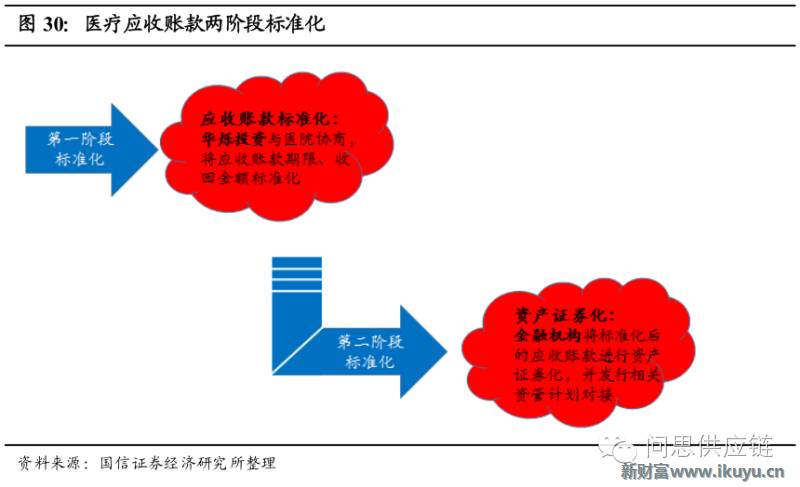应收账款经两阶段标准化,易于出表。医疗商业企业所持有的医院应收账款在付款金额、付款时间等条款设计上一般存在很大差异性,若要针对这些零碎的应收账款进行批量供应链金融业务,首先要进行金融资产的标准化处理。在华业资本的供应链金融模式中,应收账款的标准化主要有两个阶段:1)华烁投资通过与医院的深度合作关系,与医院协商将分布零碎的应收账款在付款金额和时间上进行标准化打包处理;2)金融机构通过发行资管计划,将华烁投资打包后的应收账款进行资产证券化。