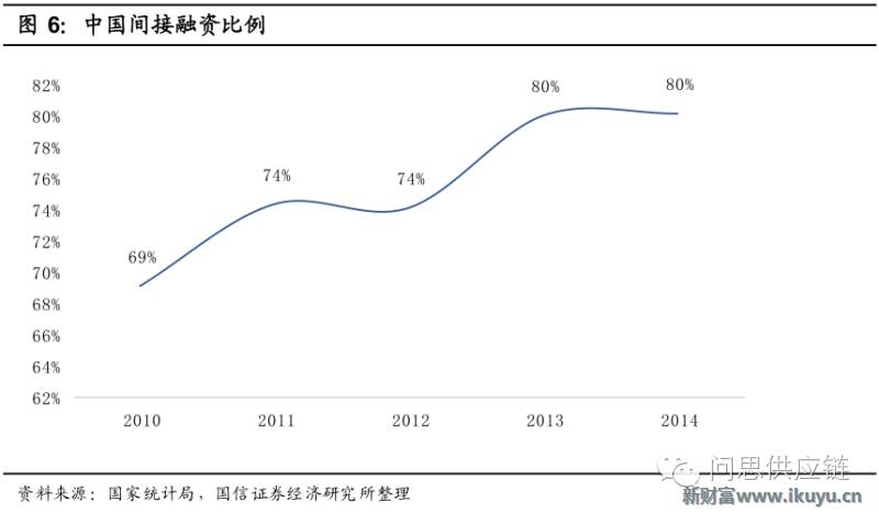 (1)中国与欧洲融资体系相近也以间接融资为主,截止2014年间接融资比例高达80%,商业银行在金融市场也占据绝对主导地位。