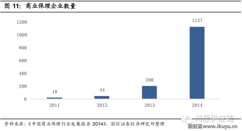 随着政策支持力度的不断加大,实质性开展试点的地区不断扩大,我国商业保理呈现出爆发式增长的态势,由2011年的18家飙升至2014年的1127家,3年来的年均复合增速高达297%。